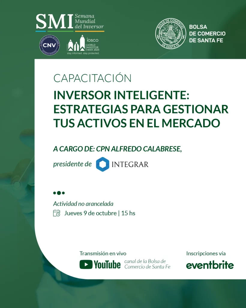 Capacitación junto a la Bolsa de Comercio de Santa Fe. Actividad no arancelada.Charla abierta “Inversor inteligente: Estrategias para…