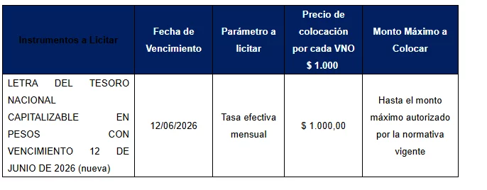 a. LETRA DEL TESORO NACIONAL CAPITALIZABLE EN PESOS CON VENCIMIENTO 12 DE JUNIO DE 2026 (nueva);