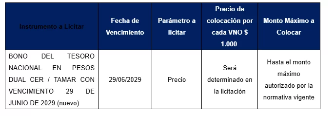 Instrumento a licitar en pesos dual CER / TAMAR: