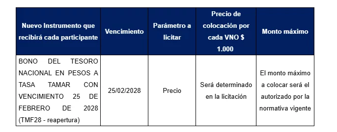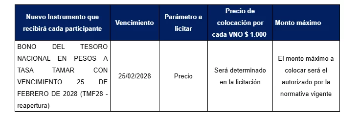 La Secretaría de Finanzas ofrece en este llamado a licitación los instrumentos del Tesoro Nacional que se detallan a continuación: