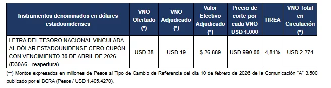 Instrumento licitado denominado en dólares estadounidenses: